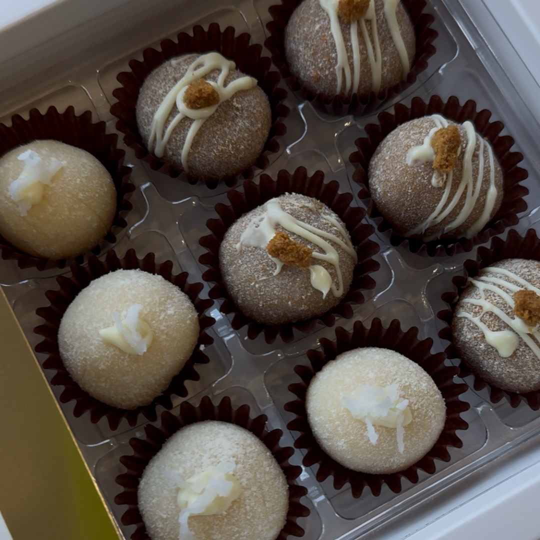 Formados a mano y terminados con delicados toppings que aportan textura y encanto, están pensados para disfrutarse sin prisa — uno a uno — ya sea para compartir en la mesa o como un gusto personal.